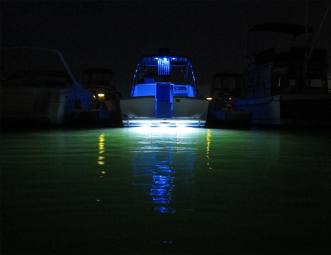 A dim gauzy blue light came on in the cockpit area of the boat Carla had boarded, showing the dark torso of one person. Running lights on the bow and stern, blinked on.